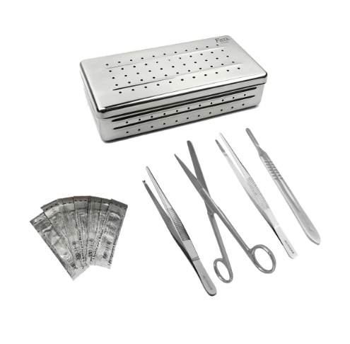 – 1 Estojo em aço inox perfurado autoclavavel 18x08x03cm.